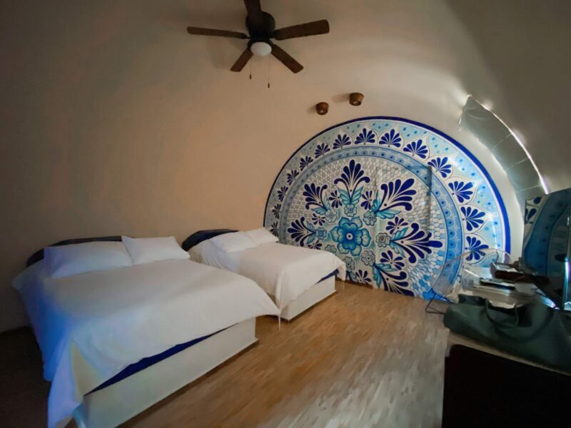We were totally floored when we arrived at our hotel. The hotel is an Instagrammer’s dream. The rooms are huge tequila barrels on the grounds of La Cofradia, a tequila company right outside the town square. For Mexican prices, it was on the expensive side but it included a welcome drink, two tequila shots in your room, breakfast, transportation into town, a tequila tour, and a tequila tasting. Totally worth it in my opinion.